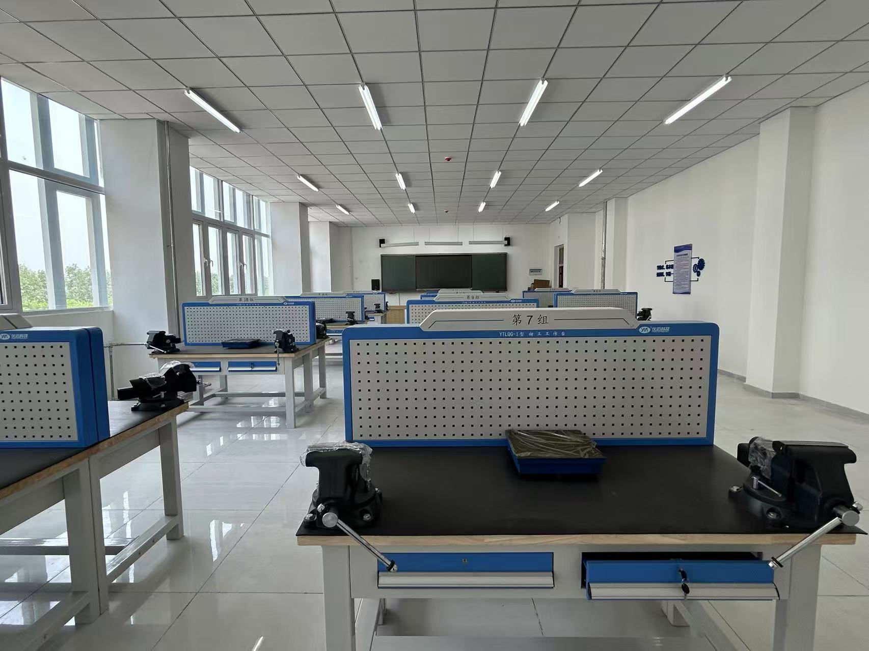 金属加工实训中心由车削、铣削、磨削3个生产性实训车间和1个钳工实训室、1个测量测绘实训室组成,拥有卧式车床10台、立式升降台铣床4台、卧式万能升降台铣床4台、万能外圆磨床2台、平面磨床2台,钳工工作台20个、台钻5台,配套辅具、量具122套,总价值286.63万元。 主要面向机械制造及自动化、智能机电技术、工业机器人技术等专业学生,开展金工实训、生产性实训、技能竞赛和技能培训与考核工作,还可以面向企业职工和社会从业人员,开展车削、铣削、磨削加工等技能提升培训工作。